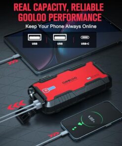 Jump start dead 12V batteries with ease using the powerful GOOLOO GT1500 jump starter. With 1500-amp peak current, it can work on gasoline engines up to 8 liters and diesel engines up to 6 liters. Equipped with advanced safety features, water-resistant design, and multi-function capabilities including LED light. Affordable and reliable with 18 months warranty.