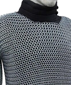 Experience the era of knights with this premium grade aluminum chain mail armor set. Perfect for historical reenactments, school stage dramas, Halloween, and more. Crafted with high-grade zinc plated steel finish on aluminum for durability and strength. Lightweight and breathable design for long-lasting comfort wear. Includes coif with overall length: 29 inches, bust: 23 inches, arm width: 9 inches, arm length: 9 inches.