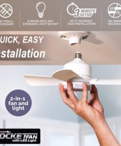 Illuminate and circulate air with this versatile Socket Fan by Bell + Howell. This 2-in-1 unit serves as a ceiling fan and a super bright LED bulb, providing 1,000 Lumens of cool light at 5,000 kelvins. Easily installed like a regular light bulb, it comes with a remote control for convenience and measures 15.4 x 15.4 x 4.92". Say goodbye to clutter with this wireless and efficient ceiling fan with light.