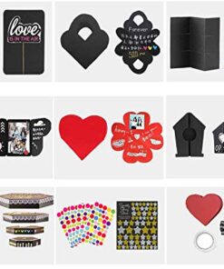 This explosion box kit includes a finished product layer box, fun cards, adhesive, gift box, stickers, ribbon, paper flowers, and more. The main box is already assembled, just add your photos and customize the inner box. Perfect for birthdays, anniversaries, weddings, and more. Measures 14.2in x 11.5in when open. Comes with 100% money-back guarantee.