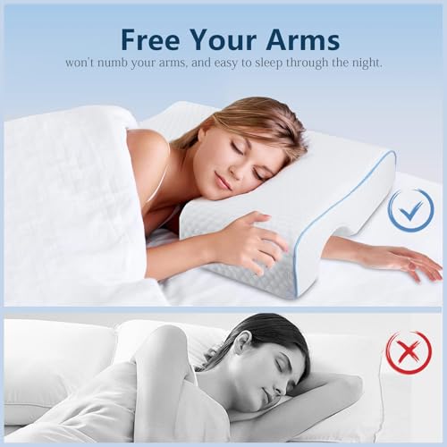HEYPORK Arched Memory Cuddle Pillow for Couples with Slow Rebound Memory Foam, Left Arm Hole Design