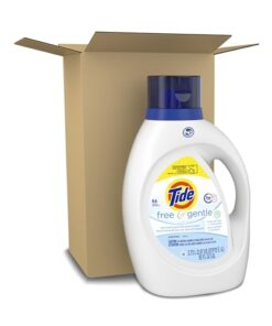 Gentle on skin yet tough on stains, Tide Free & Gentle liquid detergent is dye and perfume-free. Specially formulated to minimize skin irritation, it delivers exceptional cleaning results for all fabric types. Each pack contains 2.48 L, 64 loads.