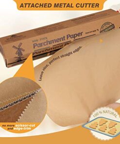 Upgrade your baking experience with this wider and longer parchment paper roll. Made from heavy-duty 100% natural wood pulp, unbleached, and non-toxic. Sturdy, non-stick, and waterproof. Safe for oven and microwave use up to 450℉. Perfect for baking, cooking, grilling, and more.