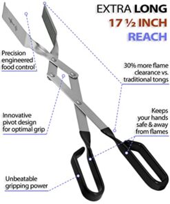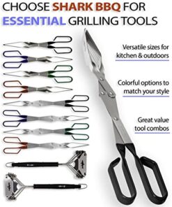 Upgrade your grilling experience with these high-quality 304 stainless steel tongs. Rust-resistant and dishwasher safe, these tongs provide unbeatable gripping power for a seamless BBQ experience. With a 17.5 inch reach, they ensure safety and control. Family-owned Shark BBQ prioritizes your grilling needs and satisfaction.