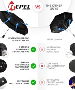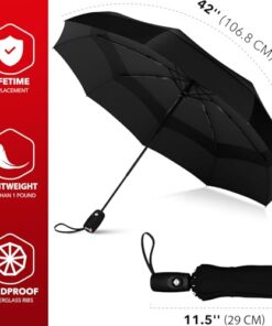 Experience high-quality and durable protection with our windproof travel umbrella. Crafted with a strong fiberglass frame and waterproof canopy, this compact umbrella is ideal for travel and everyday use. Convenient auto open/close function and lightweight design make it a must-have accessory.