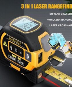 This versatile tool combines Laser Ranging Meter, 5m Tape Measure, and Cross-marking in one device. Features data storage for up to 20 groups of measurements. Accurate and safe to use for various applications like construction, engineering, and more.