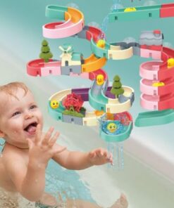 Let your child's creativity flow with this 62-piece bath toy set. Design your own water slide with suction cups, ducks, balls, and capsules. Promotes fine motor skills, creativity, and color recognition. Easy to install on tiles for endless fun in the bath. Perfect gift for toddlers aged 1-5 years old.