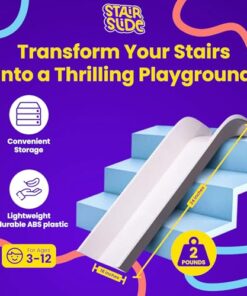 Transform your staircase into a high-speed slide with this Stairslide 4-Pack. Designed for 9-12 stairs, these elements securely grip the stairs for a safe and fun experience. Made from impact-resisting ABS plastic, each element is 43 inches long and 19 inches wide with a 13-inch seat. Easily fold and stack for convenient storage.