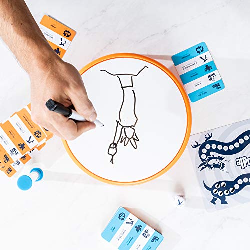 Spin and draw your way to victory in this hilarious family game! Choose a category, set the spinning speed, and race against the timer to have your teammates guess your doodles. Includes spinning drawing board, clue cards, marker, timer, and die. Perfect for family parties and game nights!