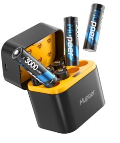 Experience constant voltage output with these rechargeable lithium AA batteries. Ideal for high power devices like Xbox, cameras, toys, and more. Comes with an integrated charging and storage box for convenience. Smart LED display shows charging status. Type C input design for versatile charging options.