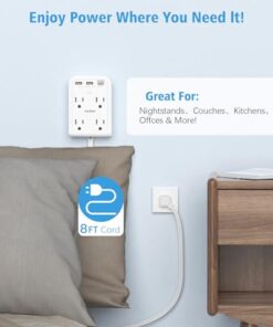 Transform 1 socket into 4 AC outlets, 2 USB-A ports, and 1 USB-C port. Features 8 ft flat cord, 350 J surge protection, and slim design for discreet placement. Easily mountable with adhesive pad or screws.